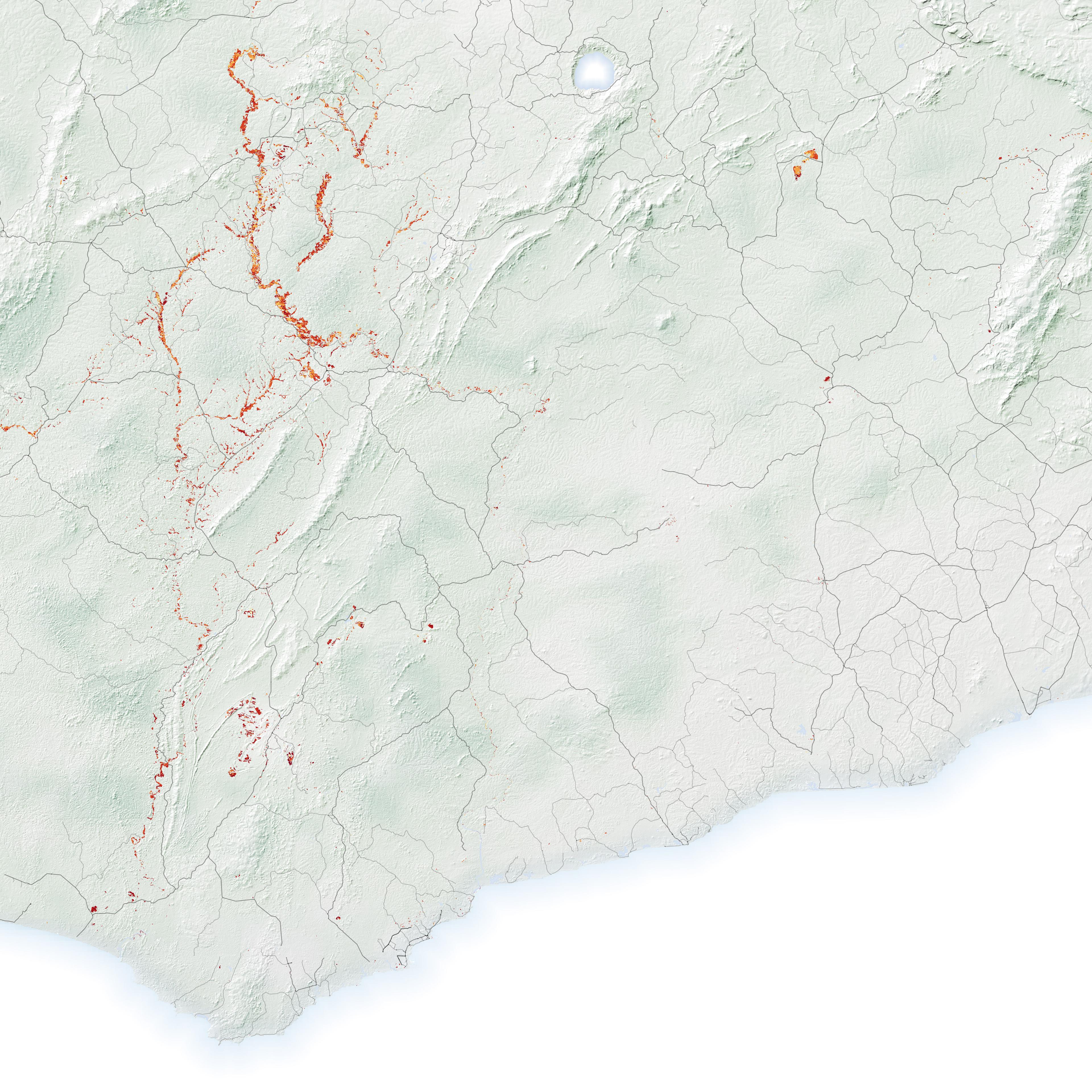 Multi-spectral satellite analysis identifies land disturbance patterns characteristic of illegal mining operations.
