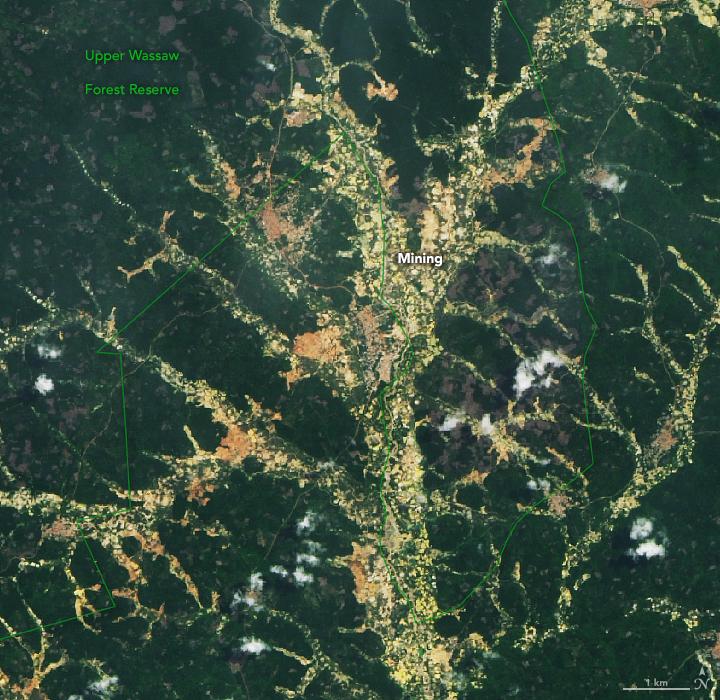 NASA Earth Observatory -- Landsat satellite imagery of mining activity in Ghana